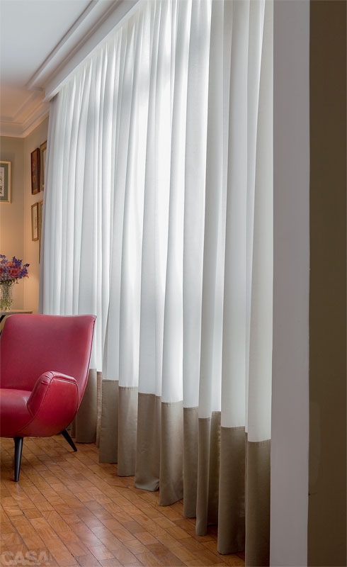 Cortinas de tecido, acabamentos diversos, com o sem forro.