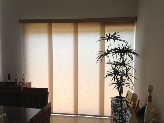 Cortina Painel é confeccionada em vários tipos de tecidos, telas e cores.É uma ótima opção para valorizar o seu ambiente, deslizando suavemente em um trilho específico de alta resistência e de fácil instalação. O trilho é fixado com velcro, o que facilita a limpeza.