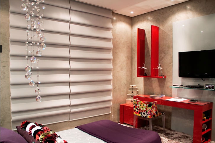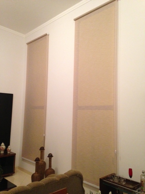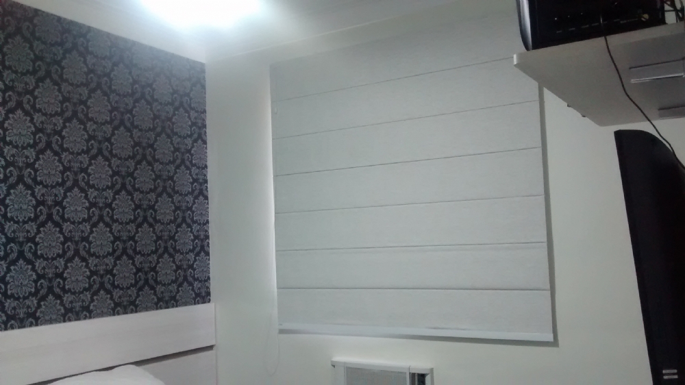 Cortinas Romana, é uma cortina tipo persiana que sobe até o teto em gomos, quando se puxa uma corda na lateral.